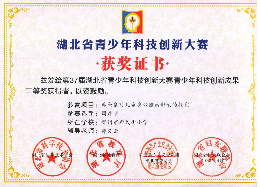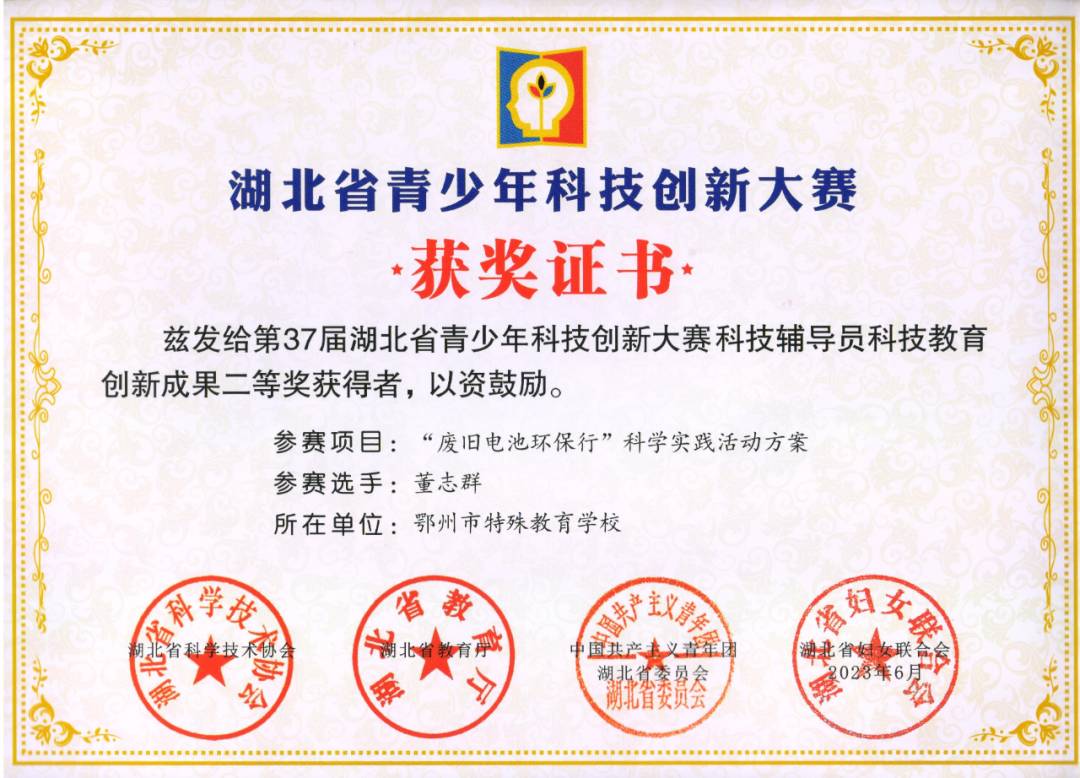 日前,湖北省科协、教育厅、团省委、省妇联联合主办的第37届湖北省青少年科技创新大赛公布成绩,鄂州市喜获两个二等奖,一个三等奖。