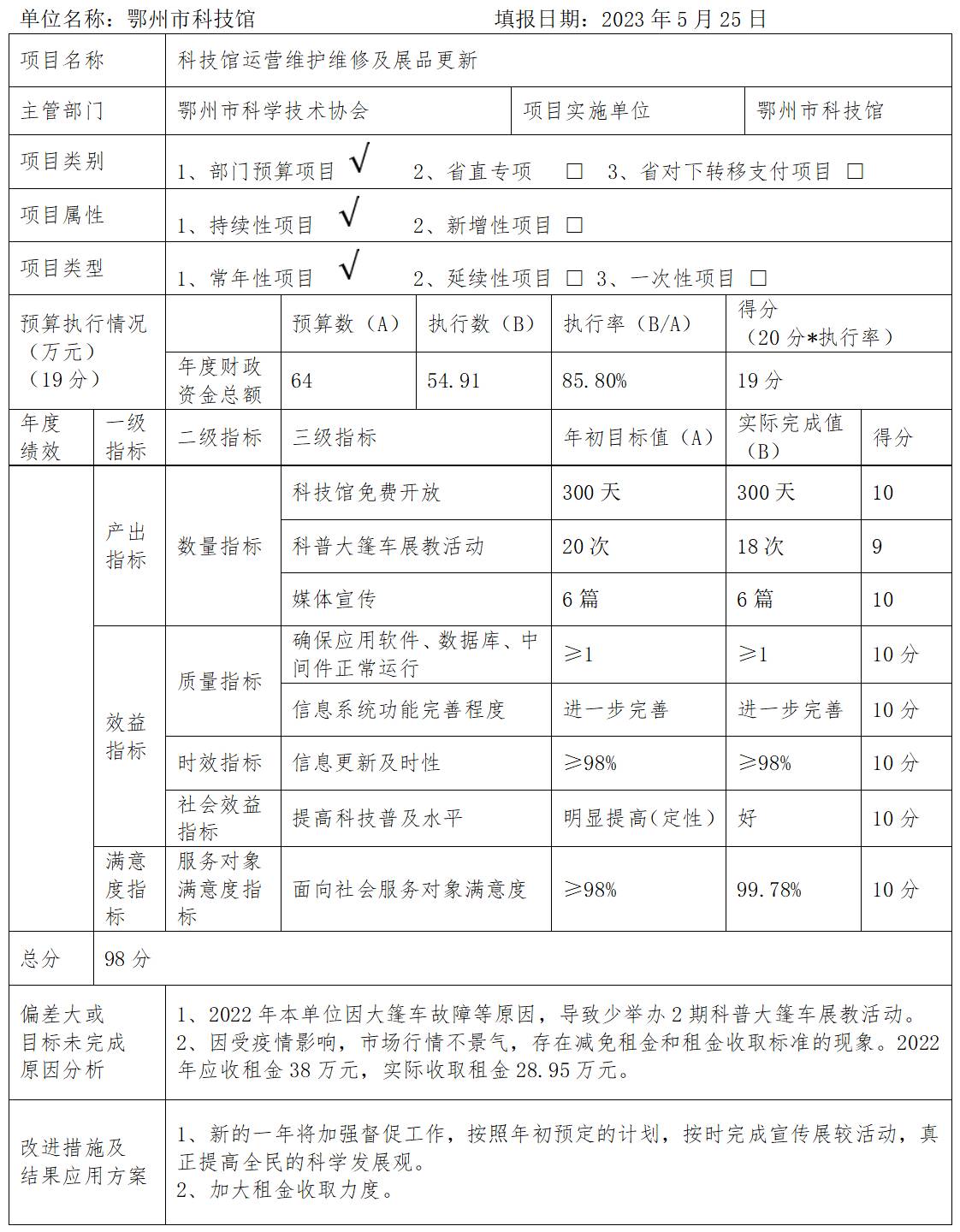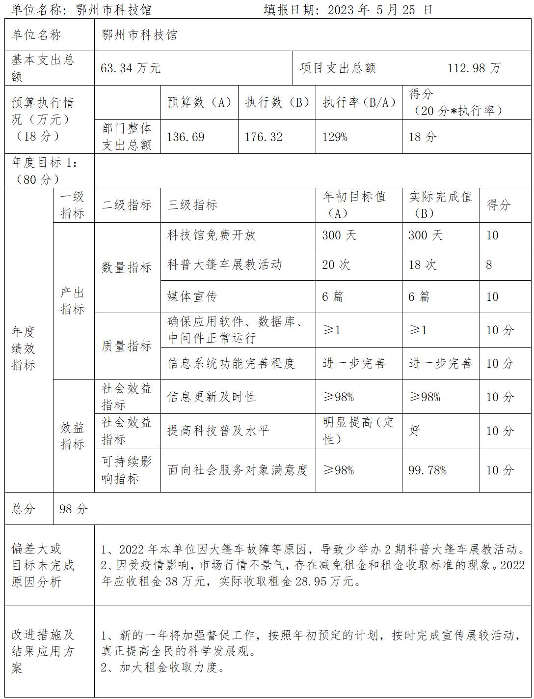 一、2022年度鄂州市科技馆整体绩效评价报告