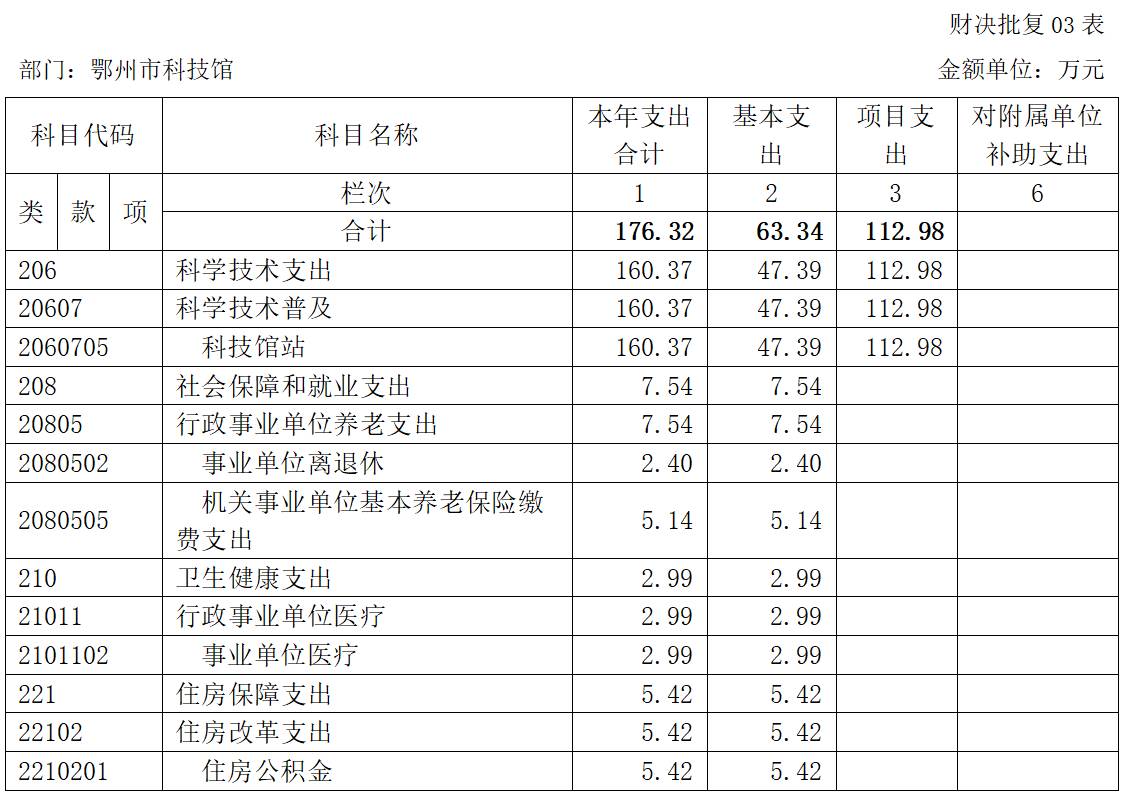 1.科学技术支出(类)科学技术普及(款)科技馆站(项):指单位用于当年的科学技术支出中的基本支出,包括人员工资及福利费、商品服务支出;
