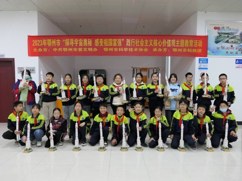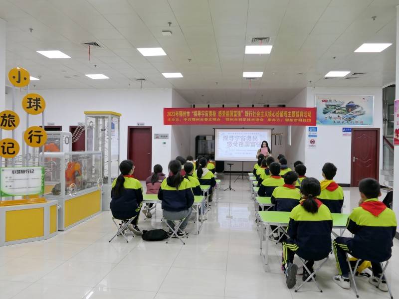 11月11日,鄂州市科技馆成功举办了一场以“探寻宇宙奥秘,感受祖国富强”为主题的社会主义核心价值观系列活动,吸引了明塘小学众多学生参与。此次活动由中共鄂州市委文明办、鄂州市科学技术协会联合主办,旨在通过多元化的活动形式,引导青少年树立正确的价值观念,提高他们的思想道德素质。