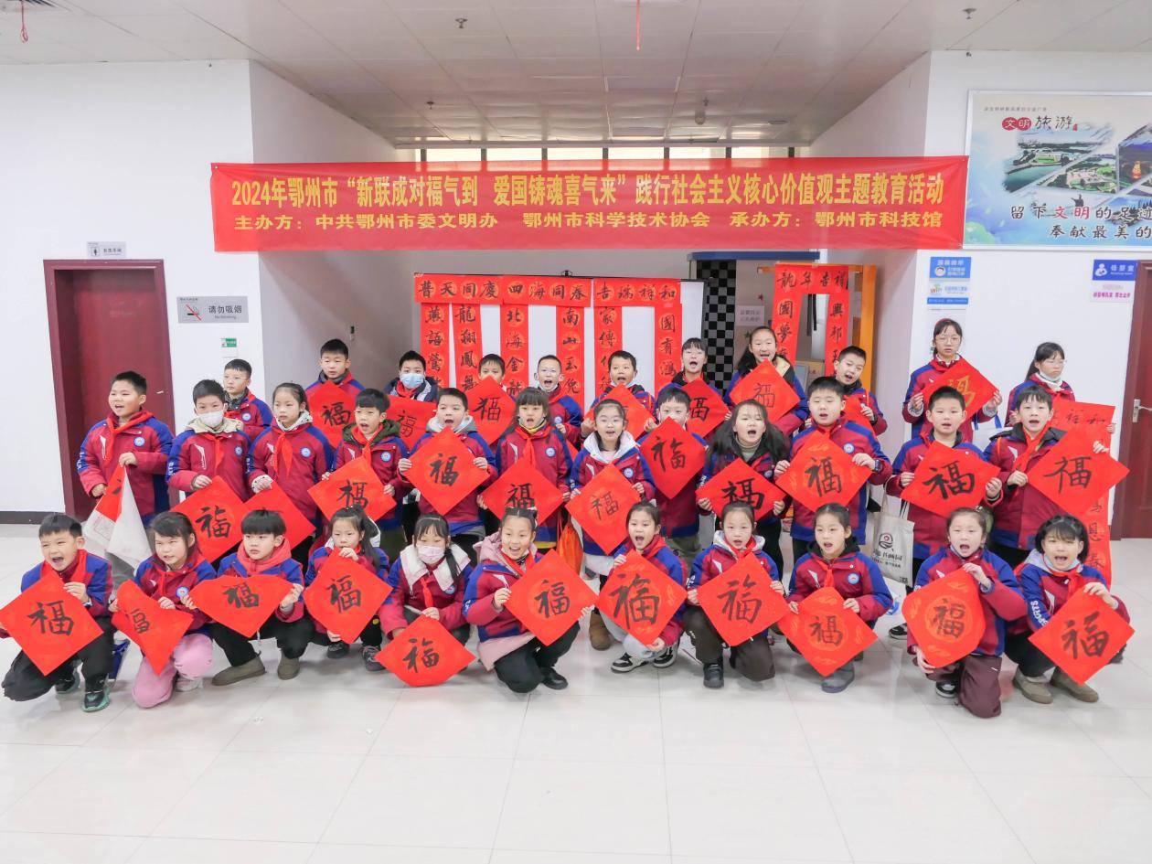 对联,是一字一音的汉语独特的艺术形式,更是中国传统文化瑰宝。1月6日上午,鄂州市科技馆开展主题为“新联成对福气到 爱国铸魂喜气来”践行社会主义核心价值观主题教育活动,吸引了鄂州市鄂城区凤凰街道莲花小学30余名学生参与。
