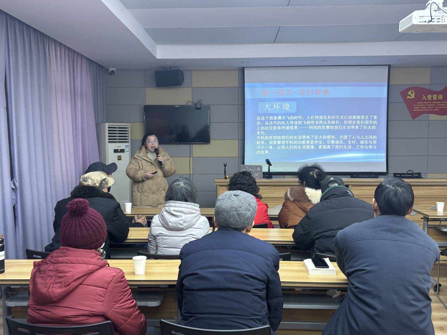 科普志愿者聚焦目前备受社会关注的电信网络诈骗问题,生动地向在座的社区老年人介绍了养老产品理财骗局、神医假药骗局、手机网络诈骗等犯罪分子的惯用伎俩和作案方式,引导老年人辨识骗局、提高防范意识。