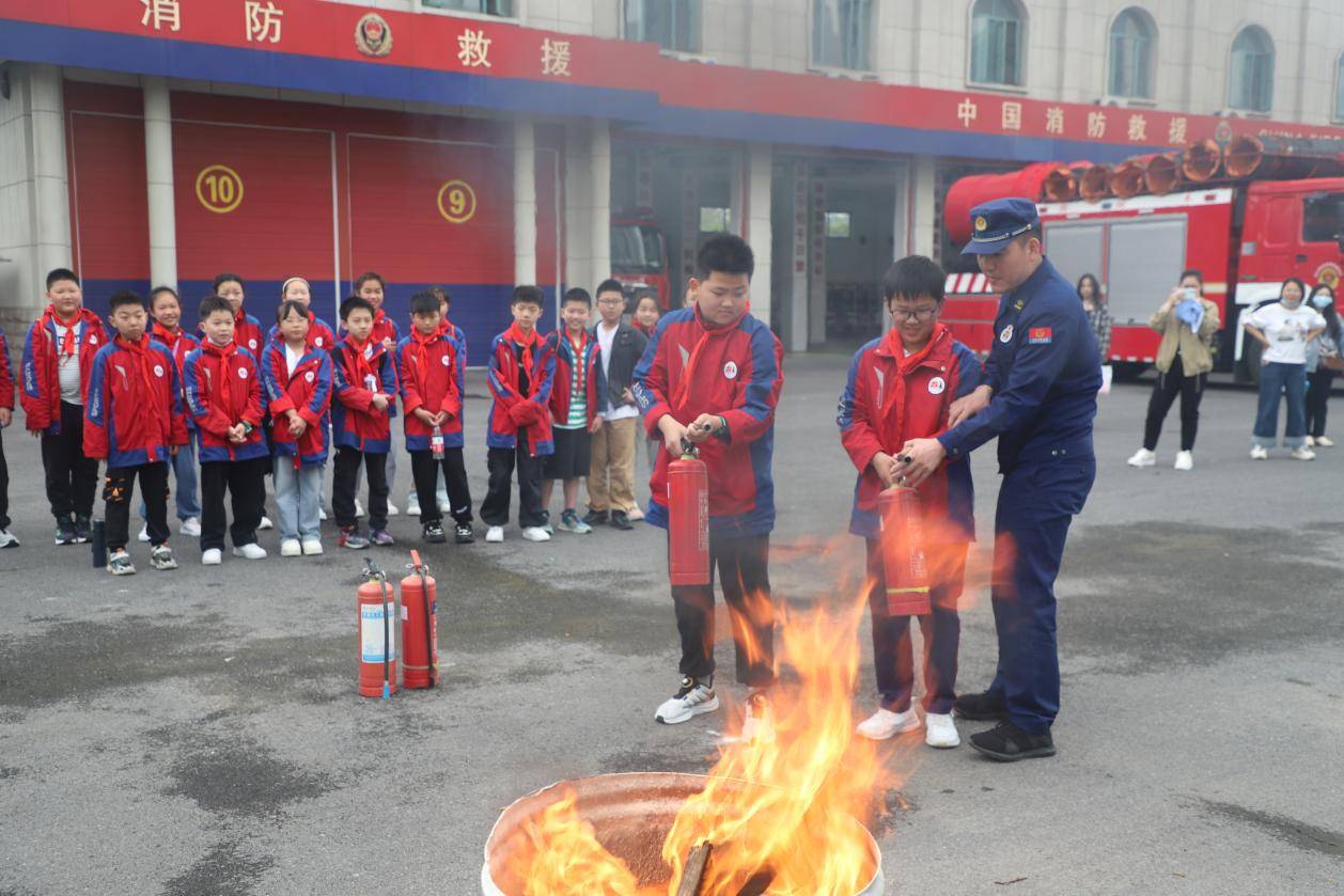 在消防员的指导和示范下,他们认真学习了如何正确使用灭火器,并参与了灭火演练。