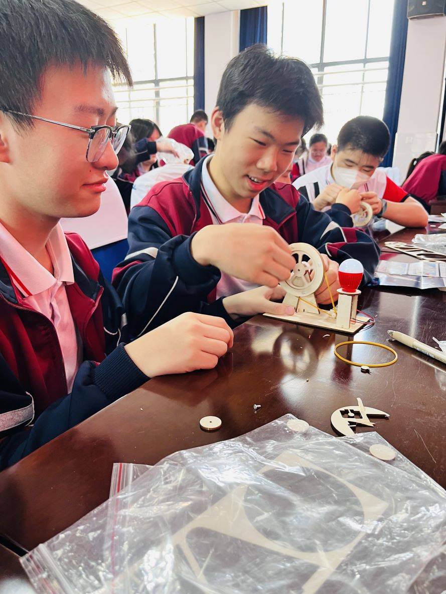 在实践环节中,同学们在科普老师的指导下动手完成了科普手工制作——手摇发电机。通过手摇发电机,观察电能产生的原理,同学们直观地感受到了机械能转化为电能的奇妙过程,对能源转换和发电原理有了更为深刻的认识和理解。