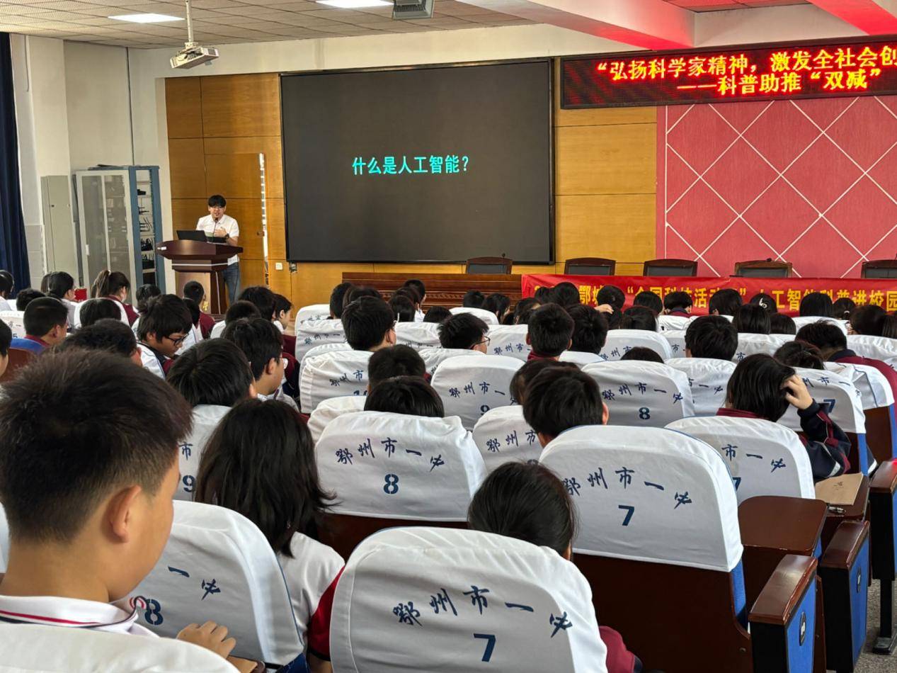 鄂城区科协邀请了省电教馆曾荣获全国机器人大赛一等奖的创客导师,开讲人工智能科普讲座。讲座中,科普老师生动有趣地向同学们讲述了人工智能的起源、发展、应用及其无限的未来,从“阿尔法狗”到“ChatGPT”,从人形机器人到智能家居,并为同学们播放了科技物流、智能机器人、汽车无人驾驶等科普小视频。老师还讲解了未来人工智能将与物联网、智能家居等领域深度融合,为人们的生活带来诸多便利。