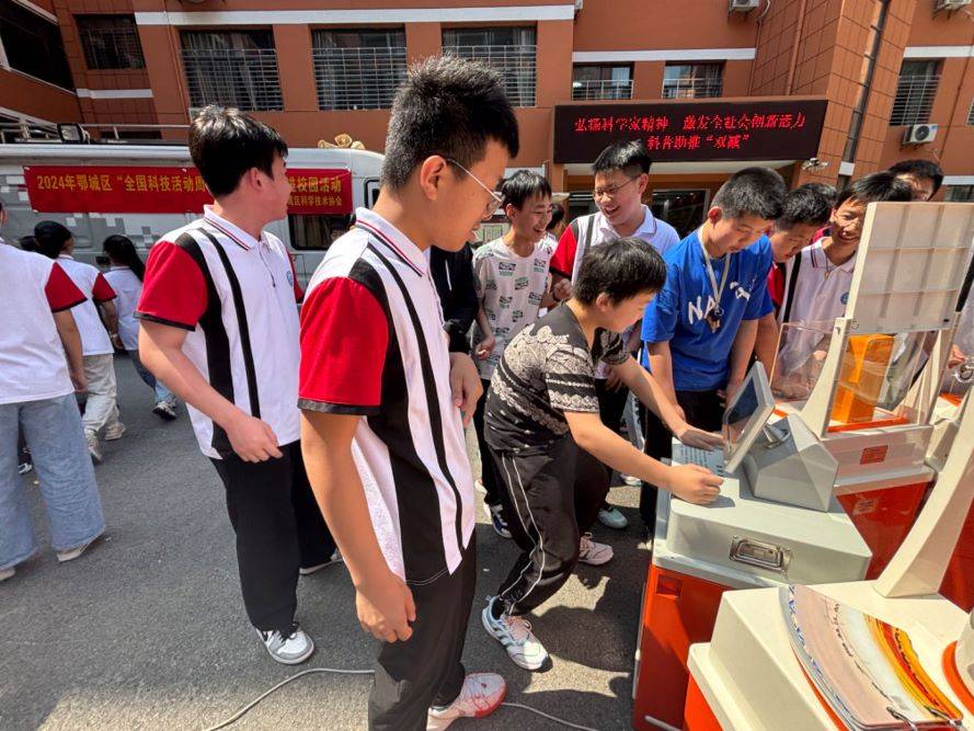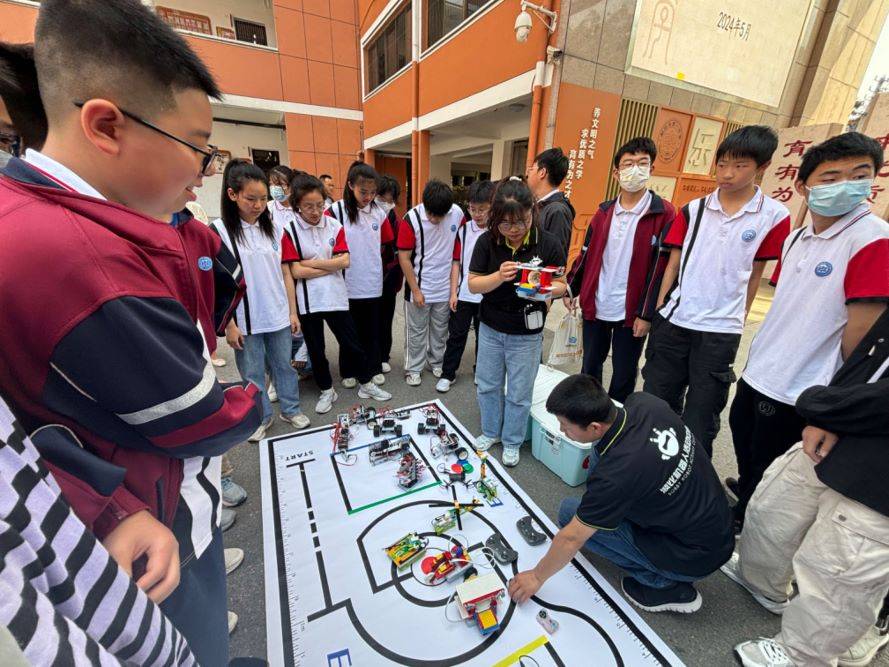 在操场的另一侧,还设置了人工智能互动体验区,学生们在科普志愿者的示范下,亲自动手参与编程挑战、机器人操控等趣味横生的项目,了解展品的科学原理,感受科学带来的乐趣。