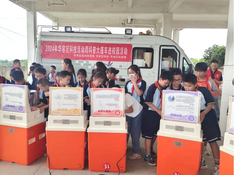 2024年5月21日上午,“2024年华容区科技活动周科普大篷车进校园活动”在胡林小学举行。此次活动由华容区发改经信局、华容区科协、华容区科技局、鄂州市科技馆主办,旨在引导广大青少年儿童通过参与寓教于乐的科普趣味性活动,培养青少年的科学素养和实践能力。