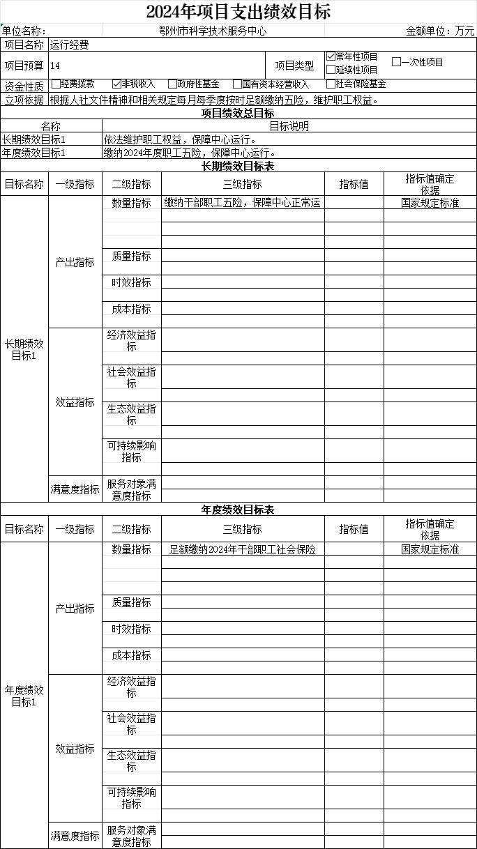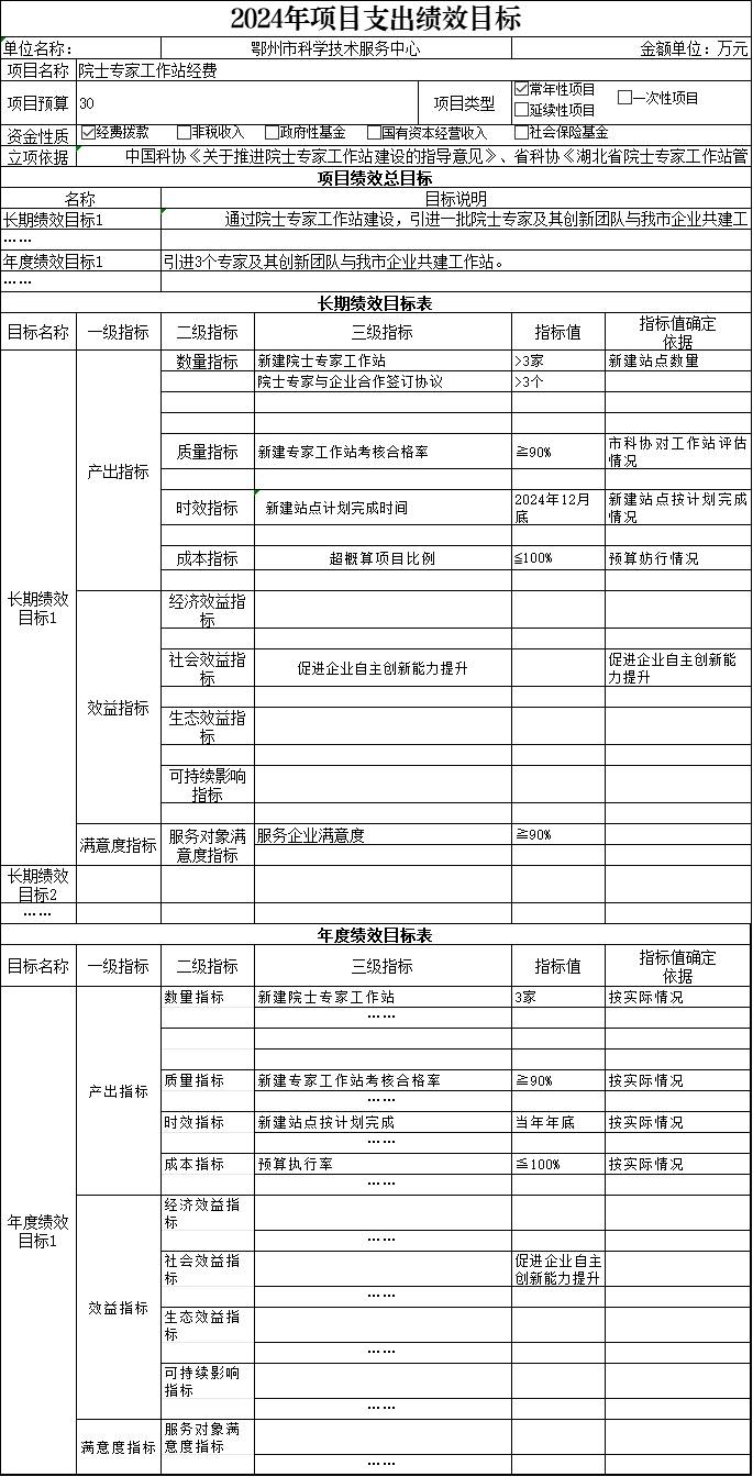 鄂州市科学技术服务中心-2024年项目支出绩效目标