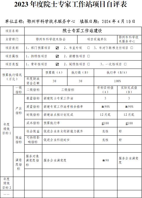 2023年度院士专家工作站项目自评表