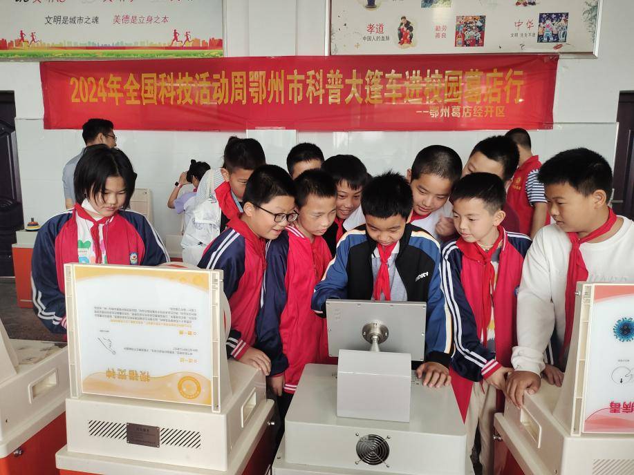 为进一步贯彻落实《全民科学素质行动计划纲要》,增强广大青少年的科技意识,激发大家参与科普、走近科学的兴趣和热情,培养广大青少年的科学兴趣,5月30日,鄂州市科普大篷车共搭载25件最新科普展教品,走进葛店经开区三王小学,带领同学们体验了一场科学之旅。