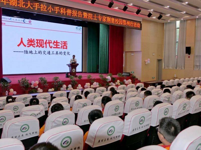 5月27日至31日,湖北大手拉小手科普报告暨院士专家荆楚校园行活动在鄂州举行。中国地质大学(武汉)逸夫博物馆与图书馆原馆长徐世球教授及四位院士专家组成的科普报告团,赴鄂州市各区十余所学校,从考古、心理健康、生物、汽车科技、桥梁建筑等方面,开展了数十场科普讲座,惠及学生三千余人。专家们精心挑选中小学课本中涉及的案例,结合最前沿、热门的科技成果,为孩子们带来一堂堂通俗生动的科学课。孩子们与科学家零距离接触,面对面交流,感受科学的魅力和价值。