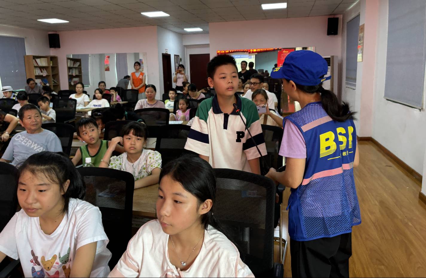 活动还设置了防溺水安全知识问答环节。科普志愿者精心设计系列问题,通过比赛竞答的形式,激发了孩子们的参与热情。小朋友们踊跃举手,家长们也积极参与,现场气氛十分热烈。