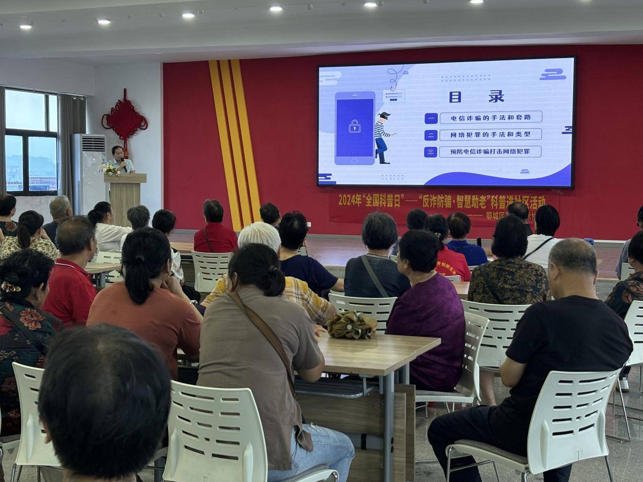 在这个信息飞速发展的时代,诈骗手段层出不穷,而老年群体往往成为诈骗分子的重点目标。在2024年全国科普日来临之际,为进一步加强社区老年人防范电信网络诈骗的意识和能力,拓展反诈宣传教育覆盖面,9月12日,鄂城区科协联合中国邮政储蓄银行鄂州虹桥支行,走进凤凰街道滨湖社区,开展以2024年“全国科普日”——“反诈防骗·智慧助老”为主题的科普进社区活动。