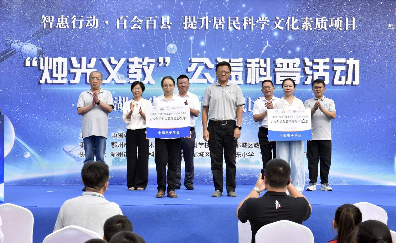 启动仪式上,中国电子学会向鄂城区乡村中小学校共捐赠机器人教育套装80套、编程教学管理平台2套。