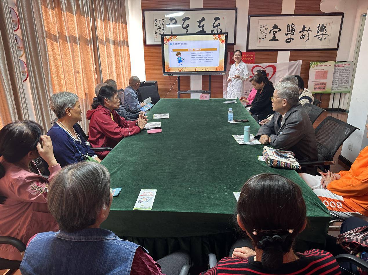 活动现场,严医生通过讲解PPT、课堂互动的授课形式,用通俗易懂的语言向大家进行秋季疾病预防的科普,主要从老年人秋季常见的疾病,心脑血管疾病、腹泻、呼吸道疾病等和秋季中医养生要点及养生饮食三个方面进行讲解。