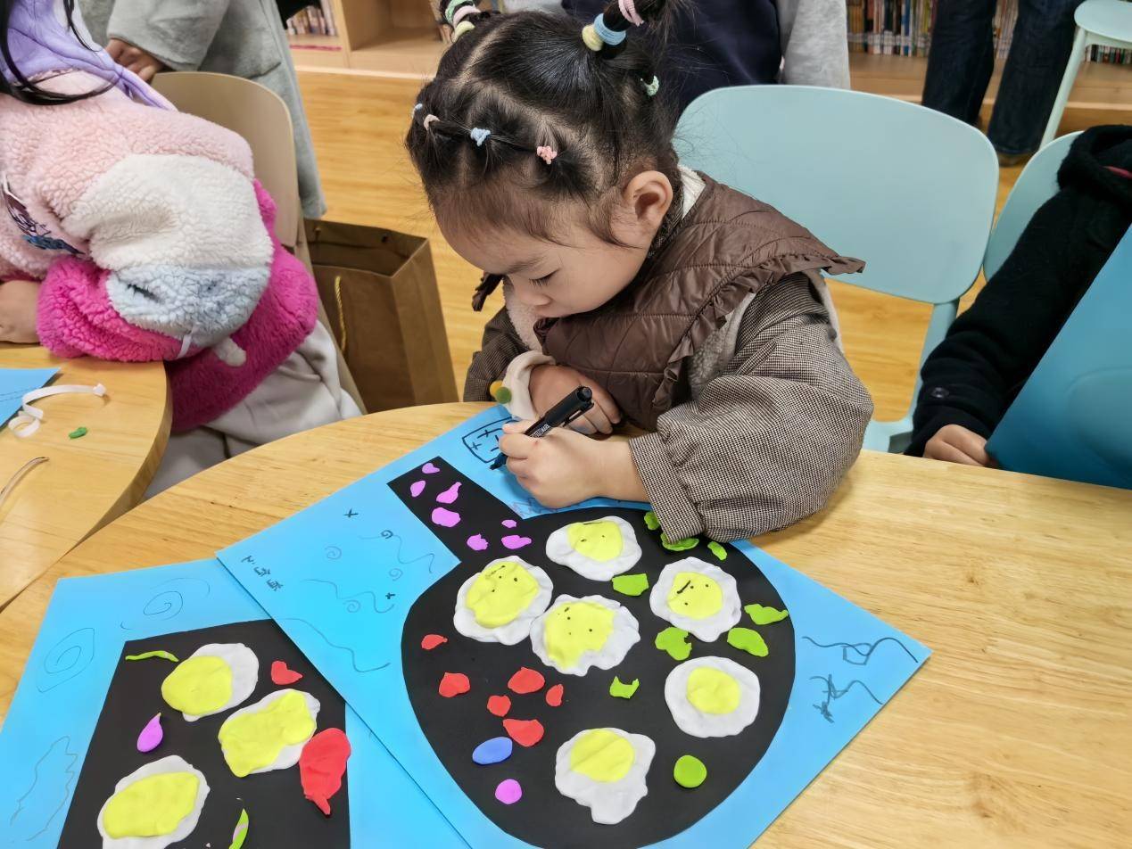 在随后的手工制作环节,涂涂老师为小朋友们准备了超轻粘土做“好吃的荷包蛋”,耐心讲粘土的制作步骤和注意细节,并进行示范。小朋友们在社工姐姐手把手的指导下开始创作,各式各样的荷包蛋新鲜出炉,孩子脸上洋溢着喜悦的笑容。