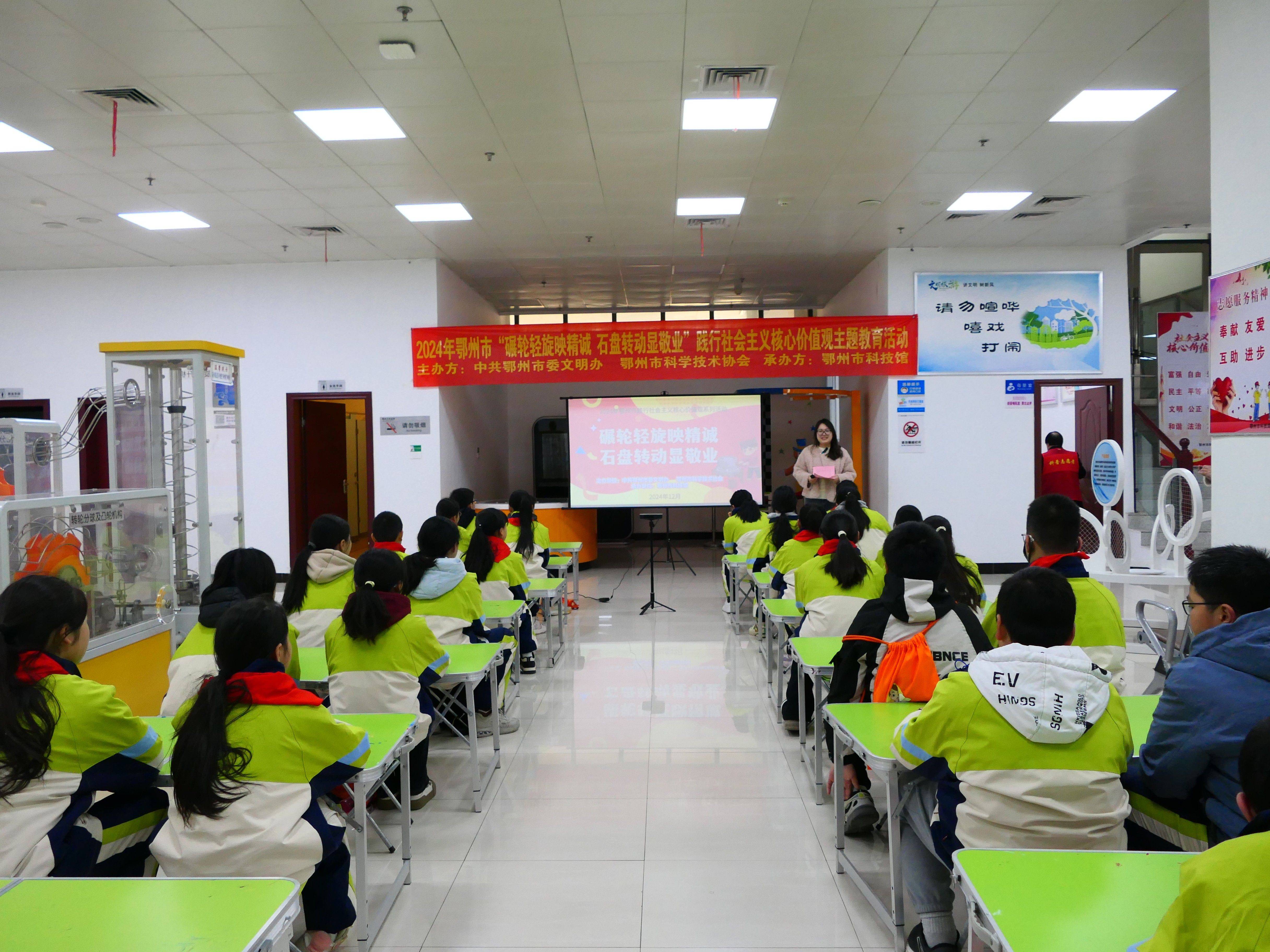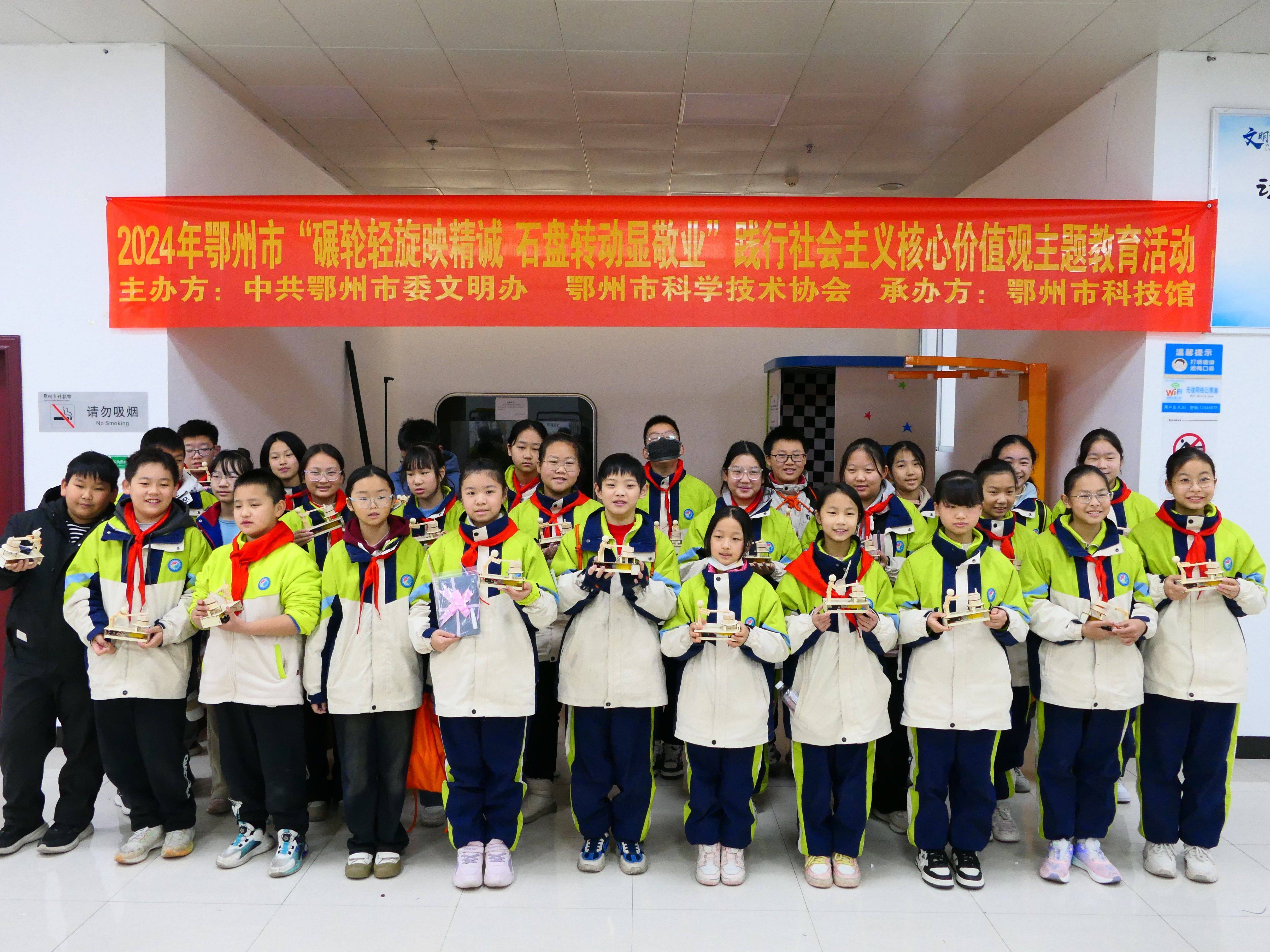 12月14日上午,一场以“碾轮轻旋映精诚,石盘转动显敬业”为主题的践行社会主义核心价值观主题教育活动在科技馆内成功举办。本次活动由中共鄂州市委文明办与鄂州市科学技术协会联合主办,鄂州市科技馆承办,吸引了来自鄂州市明塘小学的30余名小学生热情参与。