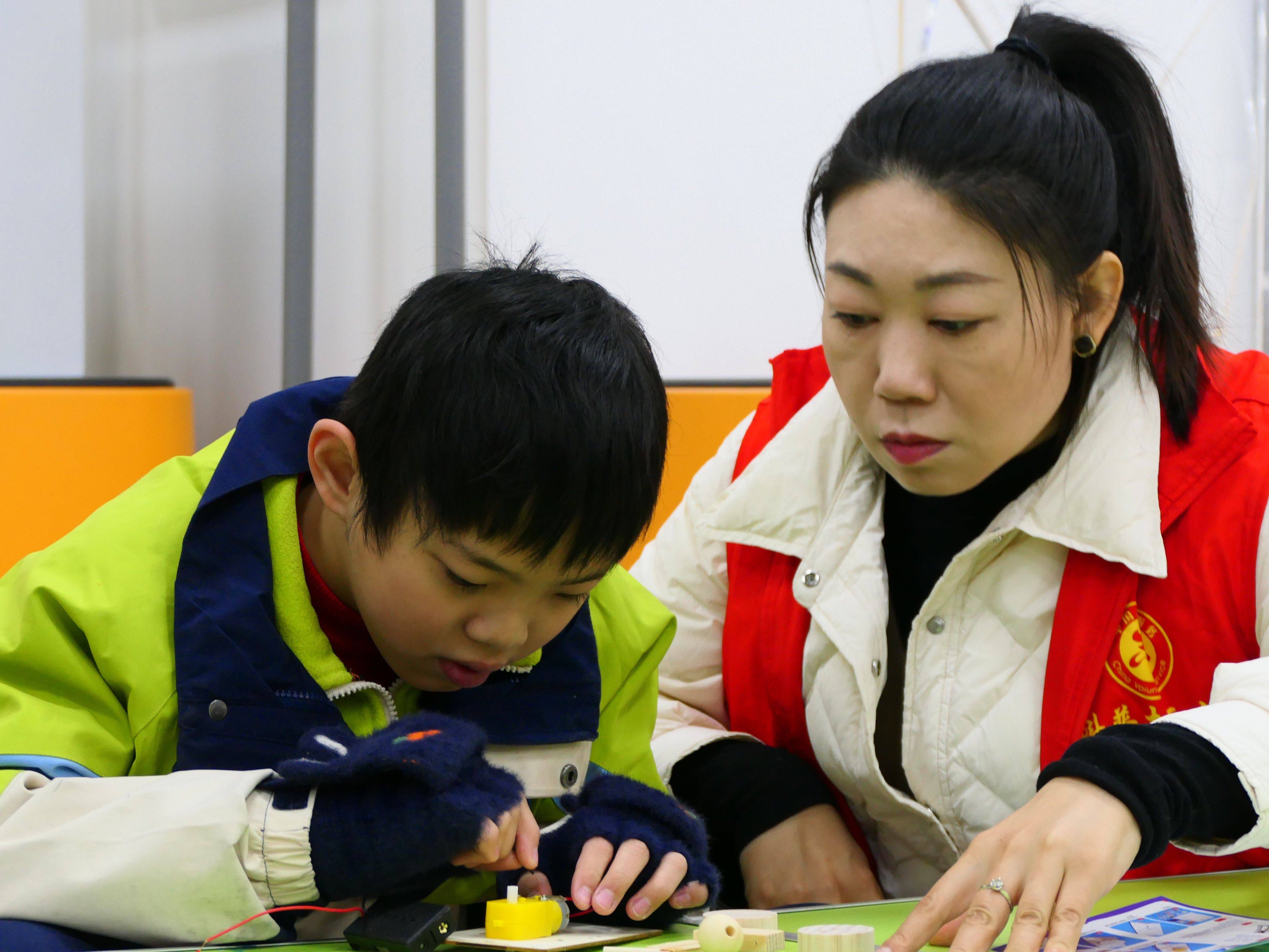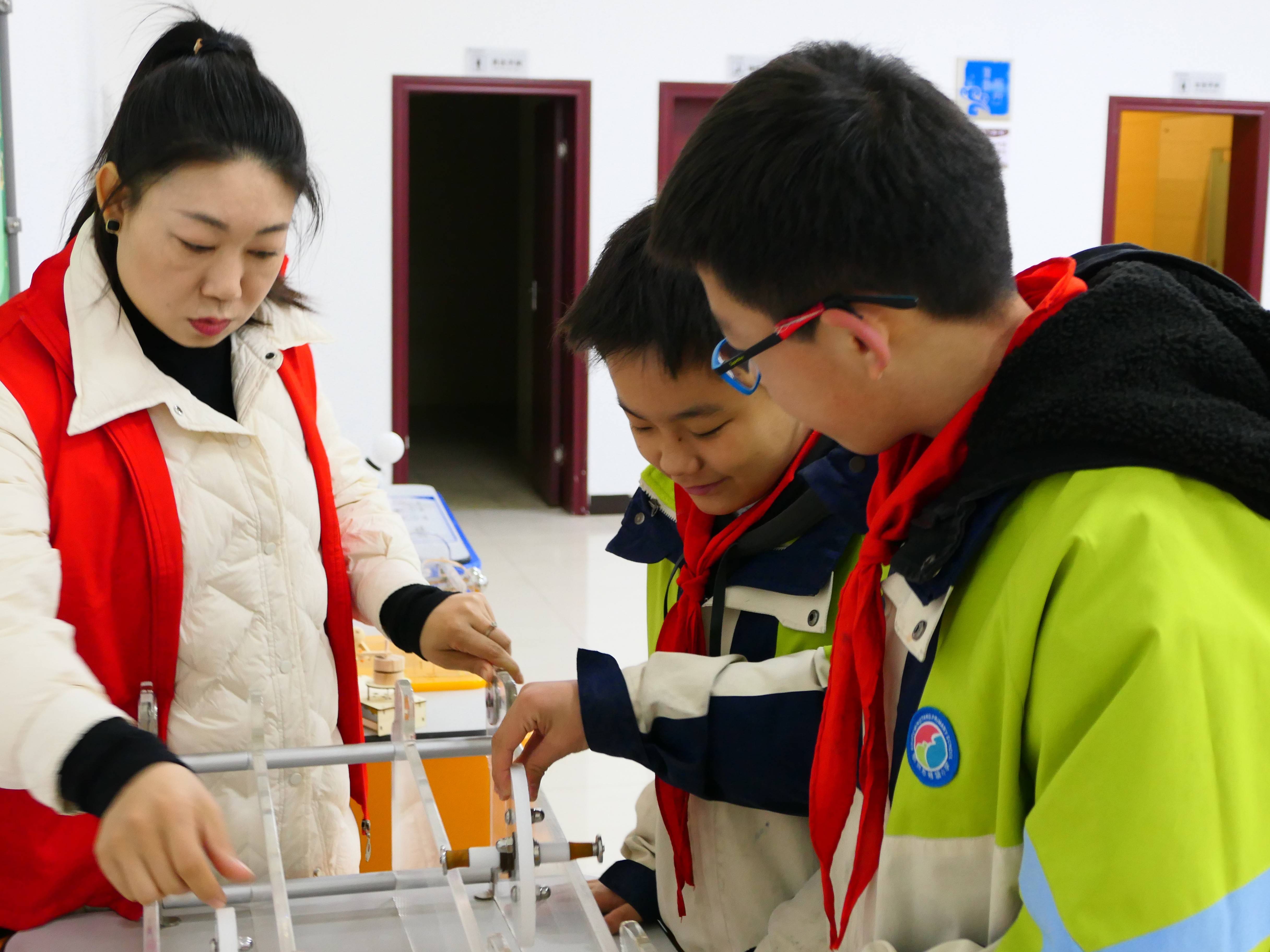 活动伊始,科技馆内琳琅满目的科技展台便吸引了同学们的目光。其中,“小球旅行记”等互动游戏激发了同学们的好奇心与探索欲,他们纷纷上前尝试,体验科技的乐趣。而“空气投篮”等项目则让同学们在合作与竞争中感受到了团队合作的无穷魅力。热心的志愿者们主动上前,耐心地为有疑惑的同学答疑解惑,并悉心指导他们如何正确使用科技器械。