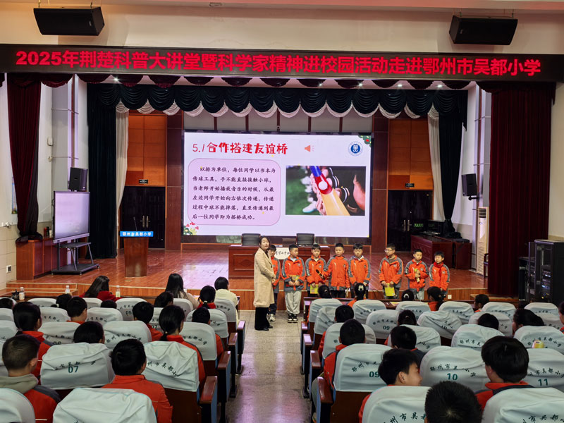 3月21日,荆楚科普大讲堂暨科学家精神进校园活动在鄂州市鄂城区吴都小学成功举办。本次活动特邀湖北省科学家精神宣讲团成员、博士生导师、华中师范大学心理学院温芳芳教授作为主讲嘉宾,以"种下友谊树,搭起合作桥"为主题,为吴都小学五、六年级200余名师生带来一场融合心理学知识与科学实践的特色讲座。