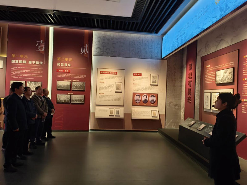 在党史馆讲解员的引导下,市科协一行参观了以“首义有功、建党有名、建军有为”为主题的展览。展览通过珍贵的历史档案、影像资料及实物展陈,系统展示了鄂州在辛亥革命、中共建党及南昌起义等重大历史事件中的突出贡献。重点参观学习了鄂州建党“三杰”范鸿劼(李大钊的优秀学生、得力助手)、刘伯垂(中共湖北早期党组织的奠基人)、赵子俊(中共早期工人党员)等革命先驱的生平事迹,以及鄂州2000余名子弟追随贺龙参加南昌起义的壮烈历程。从辛亥革命鄂州志士的振臂疾呼,到中共早期组织的秘密活动,再到南昌起义中鄂州子弟的英勇冲锋,厚重的历史细节让参观者沉浸其中,革命先烈坚定不移的革命信念、顽强拼搏的斗争精神、人民至上的初心使命让参观者深受教育、倍受感动。