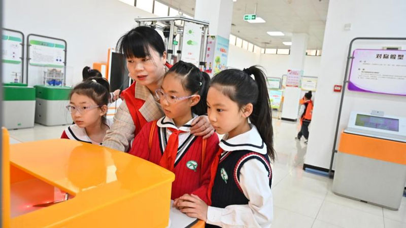 活动伊始,身着红色马甲的科普志愿者便带领孩子们开启科技探索之旅。“管中窥豹”等科技展品激发了同学们的好奇心与探索欲,他们纷纷上前尝试,体验科技的乐趣。而“自行车发电”等项目则让同学们在合作与竞争中感受到了团队合作的无穷魅力。热心的志愿者们主动上前,耐心地为有疑惑的同学答疑解惑,并悉心指导他们如何正确使用科技器械。科技馆内此起彼伏的讨论声,宛如春日的鸟鸣般充满生机。