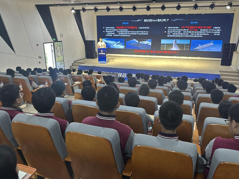 授课老师张杰克以国际军事热点为背景,深入浅出地讲解航天与航空的基本概念及其差异,并以导弹为例,详细介绍航天器和航空器的系列型号产品。同时,他用生动的语言向同学们讲述中国航天事业的发展历程,分享航天科学家的感人故事,介绍中国航天事业在新世纪以来的迅猛发展以及航天人所秉持的严谨求实、勇于探索、艰苦奋斗的精神。
