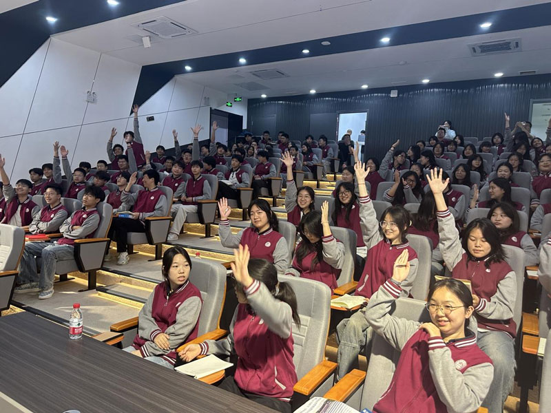 此外,张老师还向同学们介绍“国防七子”院校的相关信息以及投身航天事业的专业选择,进一步激发青少年对航天事业的热情和报国之志。活动尾声特别设置了问答互动环节,同学们纷纷举手,积极抢答问题,现场气氛热烈而活跃。