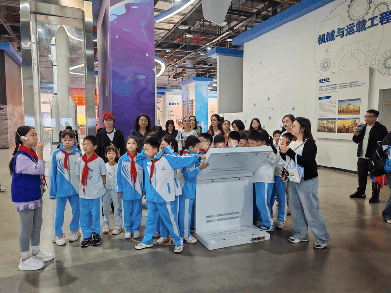 一踏进科技馆大门,亲子家庭就像发现了宝藏的小探险家,在工作人员的引导下迫不及待地踏上了奇妙的科技探秘之旅。瞧,小小志愿者们化身“科学向导”,用生动有趣的语言讲解着机械的奥秘、信息的奇妙、能源的力量——从农业的小智慧到航天航空的大梦想,一个个领域知识被他们讲得像故事书一样精彩。讲解时,志愿者们还时不时抛出“小问题”与孩子们互动,逗得大家眼睛发亮,好奇心和探索欲像小火箭一样“嗖”地冲上云霄,亲子家庭在一问一答中亲手揭开了科学世界的神秘面纱。
