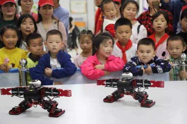 5月17日,在鄂州市科技馆,当机器人表演倒立、跳舞等动作时,来自鄂州市农村的30余名留守儿童露出灿烂的笑容,伴随着歌曲《小苹果》动人的旋律,他们也开心的一起唱起来。这是今年鄂州市“关爱留守儿童、科普你我同行”亲子科普志愿服务活动中的一幕。