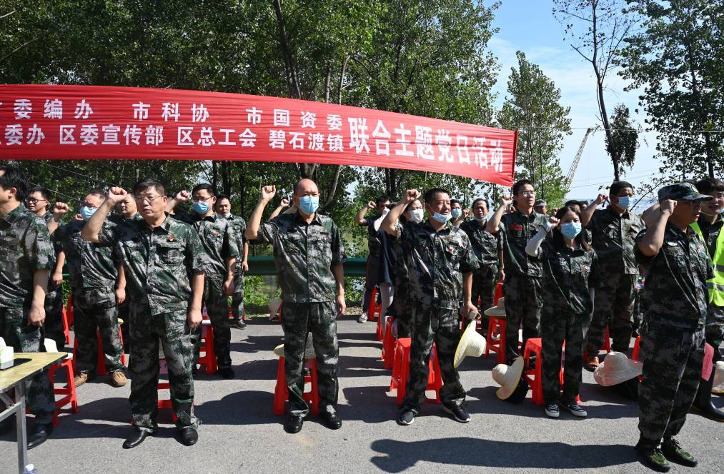 8月1日,驻碧石渡镇长江干堤防汛包保单位(市委编办、市科协、市国资委等)在昌大堤举行联合主题党日活动暨党风廉政建设警示教育大会。
