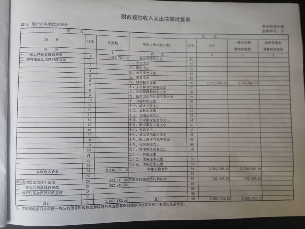2016年 鄂州市科协 部门“三公”经费财政拨款预算表