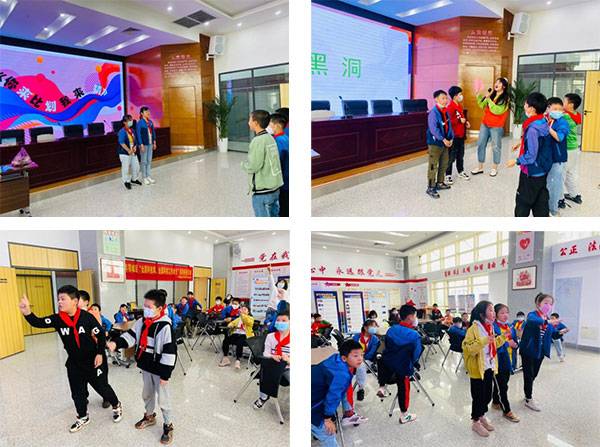 课堂间隙,为了活跃学习氛围,志愿者带着小朋友们玩起了《你来比划我来猜》的小游戏?;疃幸宰槲ノ?,同学们根据大屏提示的词语,通过手势、语言提示等方式,团结协作、高度配合,“天问”“神州七号”“伏特”“牛顿”……一个个科学相关的词语都难不倒小朋友们。轻松愉快的小游戏展现出同学们强大的表现力和语言表达能力,也让同学们了解到更多的科技术语。