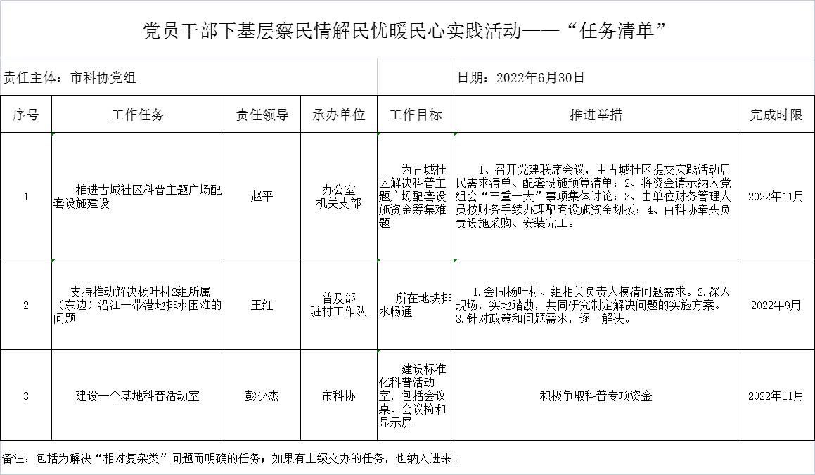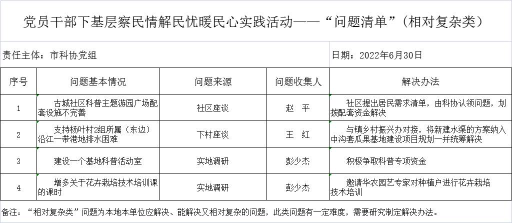 鄂州市科协党员干部下基层察民情解民忧暖民心实践活动‘’三个清单‘’
