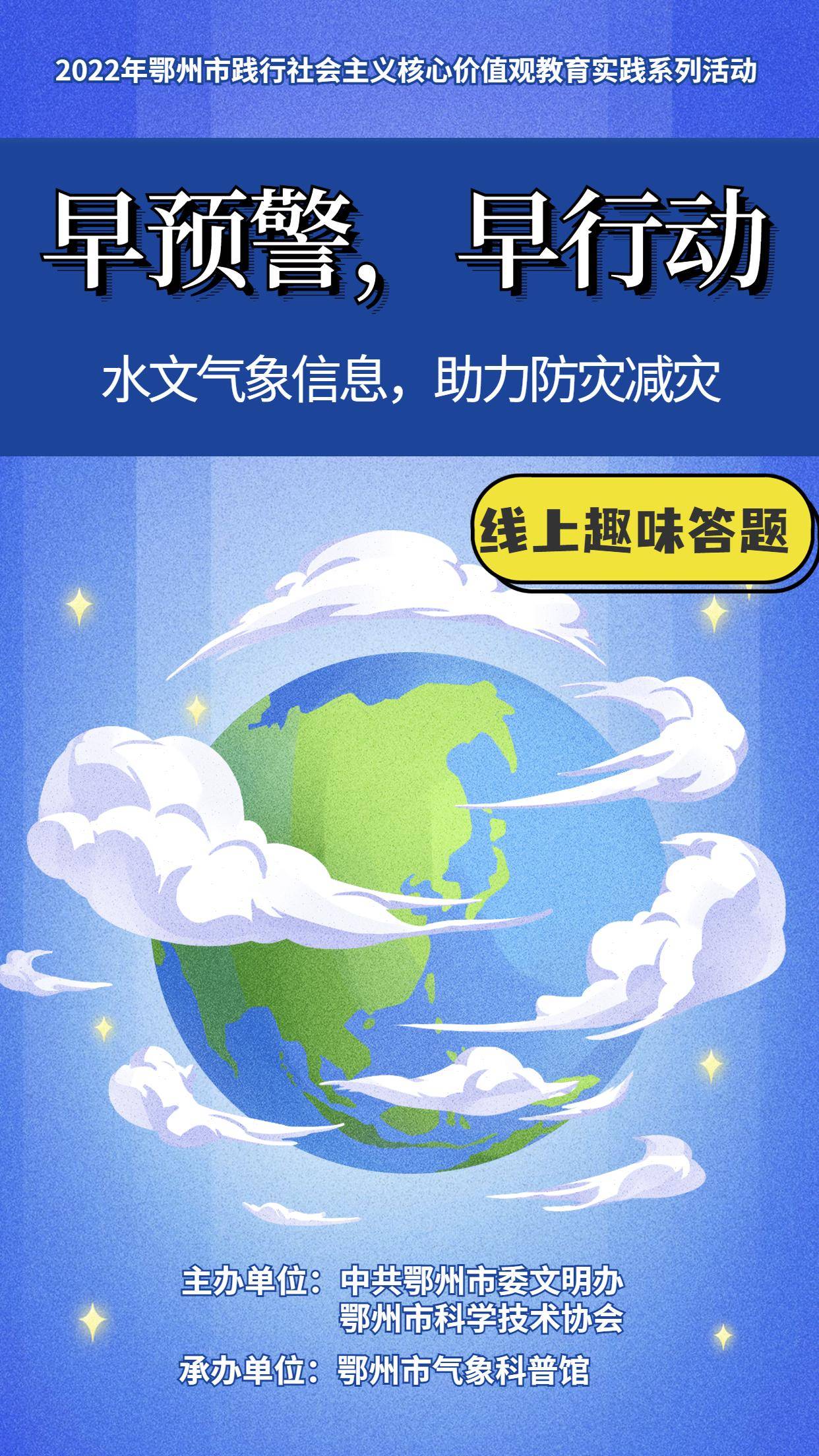 1960年6月,世界气象组织通过决议,把每年的3月23日定为世界气象日。为使庆祝“世界气象日”的活动更具有实际意义,世界气象组织执行理事会为每年的“世界气象日”选定一个宣传主题,号召世界各成员国以多种方式开展宣传活动。围绕2022年“早预警、早行动;水文气象信息,助力防灾减灾”世界气象日主题,大力普及气象知识、弘扬科学精神,引导公众关心气象、理解气象、应用气象。