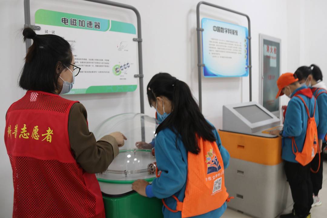 当日上午9点钟,同学们兴奋地来到了鄂州市科技馆,按照防疫要求进入馆内后直奔二楼,各种有趣的科普展品一下子就把大家的目光吸引住了,同学们好奇地动手体验,尽享科学带来的乐趣。科普志愿者耐心地向学生们介绍着每一件科普展品的操作原理和展示的科学知识。