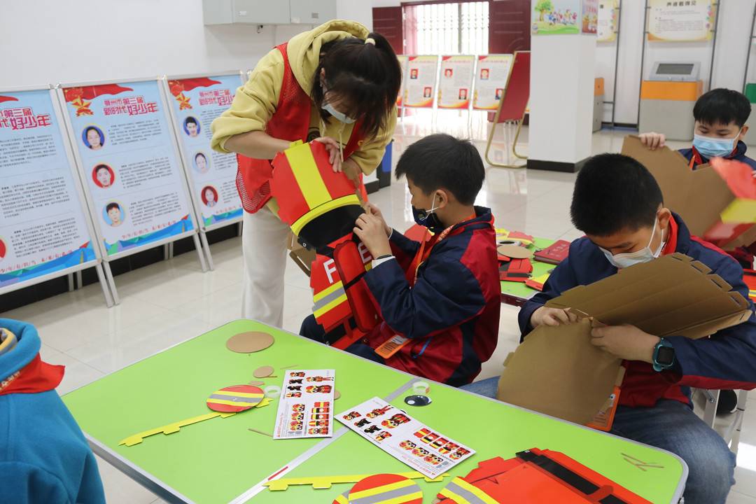 临近消防宣传日,老师借此时机科普了消防安全相关知识,又通过提问的方式,进一步提升同学们的消防安全、防灾减灾意识。为深化教育效果,科普老师给同学们安排了手工制作消防人偶的任务,锻炼他们动手能力的同时,也在他们心中树立消防员赴汤蹈火的勇敢形象。同学们认真学习了各项制作步骤,大家认真制作,遇到困难相互帮助,现场展现出一片和谐的氛围。