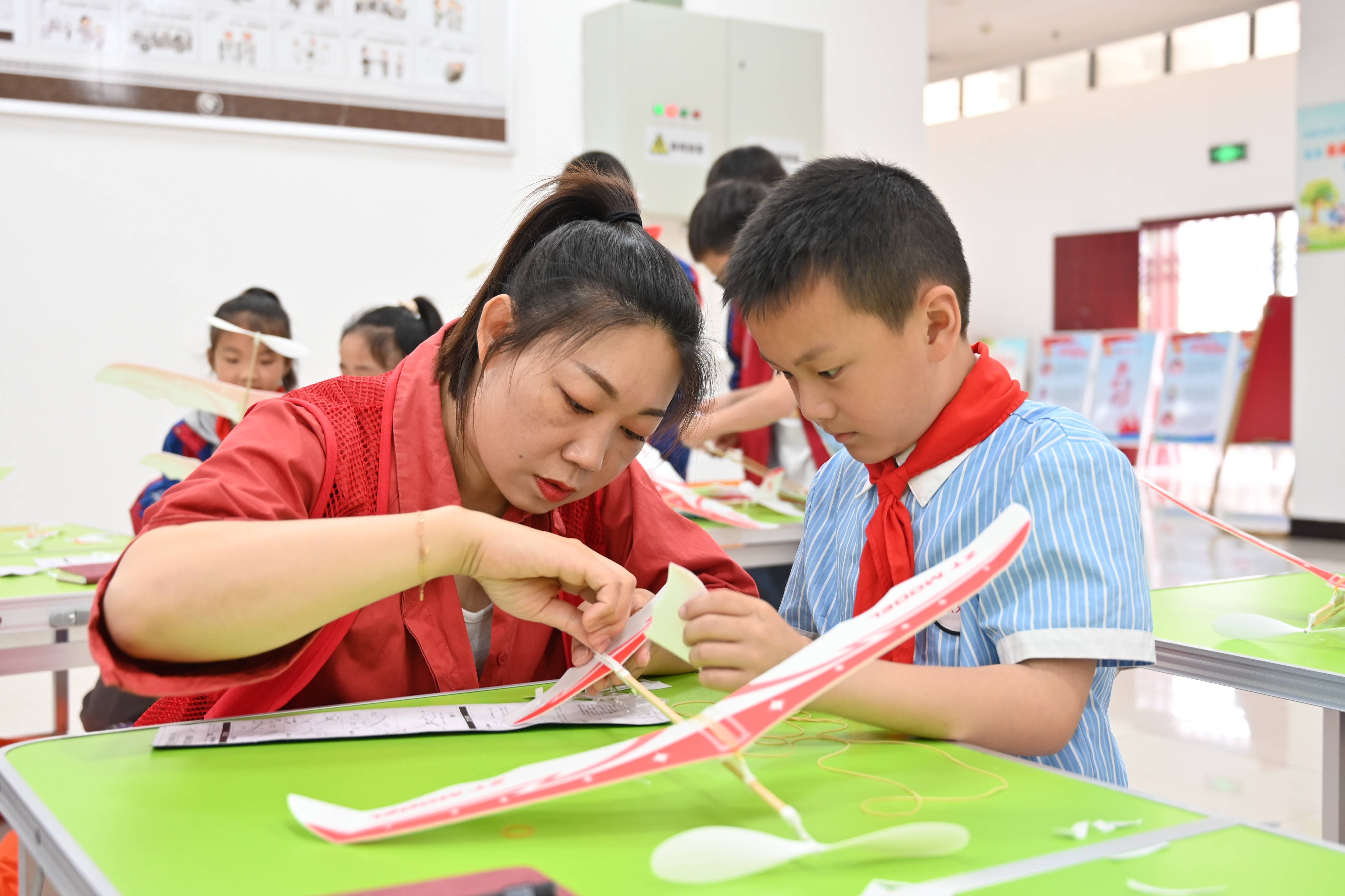 最后,活动进入同学们期待已久的手工环节。飞机发展的历史、飞机运作的原理、飞机手工的制作流程……一系列知识科普让同学们应接不暇,直呼过瘾,迫不及待地投入到实践环节。在科普老师的指导下,同学们用灵巧的双手拼凑出一架架精致的飞机模型,纷纷绽放纯真笑颜。