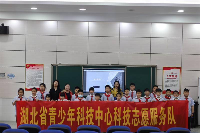上图为5月10日上午倪婉老师在鄂城区五里墩小学开展科普活动