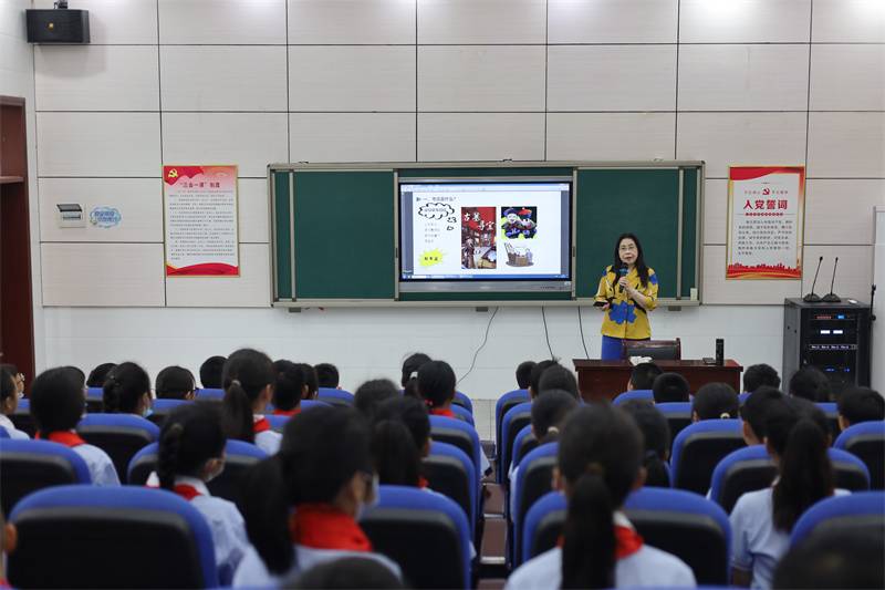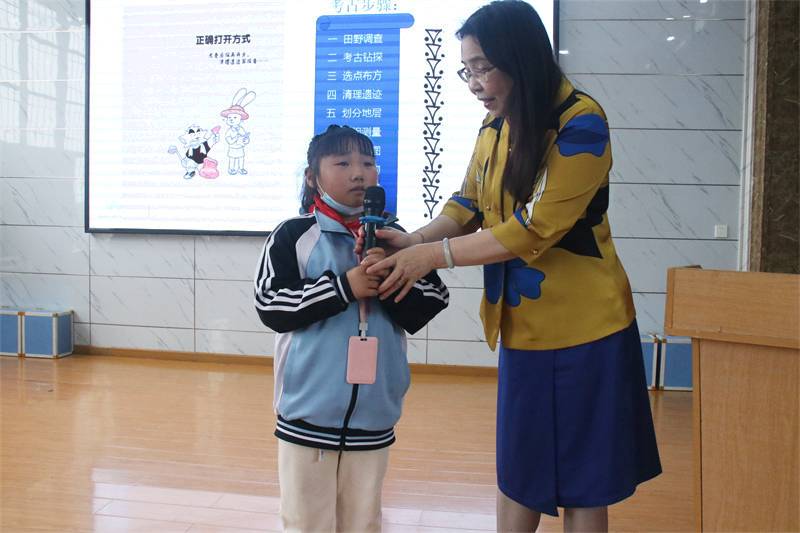 “考古帮助我们超越时空和古人对话,这就是考古的价值和意义。”倪老师指出现今人们对考古行为认识的误区,详细讲解了考古不仅仅是挖掘,而是通过对地下文物的研究与保护,见证古代社会的遗迹,感知华夏历史的源远流长。她通过孩子们能够理解的漫画图片和趣味视频,带领学生认识考古的定义与内容,了解考古勘探的方法和工具,树立关于考古知识和文物保护的正确理念。