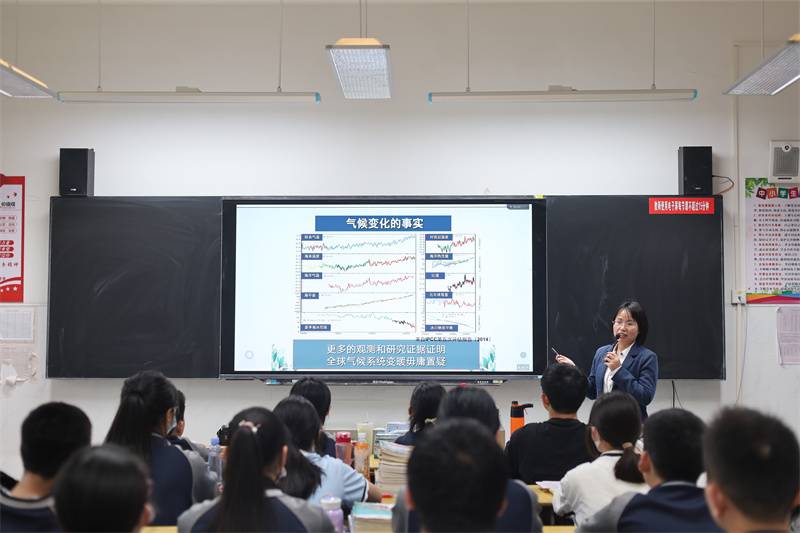在长岭中学、华容中学及黄山中学,面对高年龄层次的学生,汪应琼老师的科普内容也随之进入更深层面的讲解。课堂上,汪老师引用大量的数据和图表,让同学们知道了全球温度的上升、极端气候事件的增多、海平面的上升等现象以及相应的自然灾害的发生情况。同学们积极讨论了应对气候变化的方法,其中指出科技的发展可以帮助人类更有效地应对气候变化。汪老师还传授了应对自然灾害,危险中逃生、自救、互救的基本方法,并强调减少温室气体排放是应对气候变化的关键。同学们纷纷表示收获良多。
