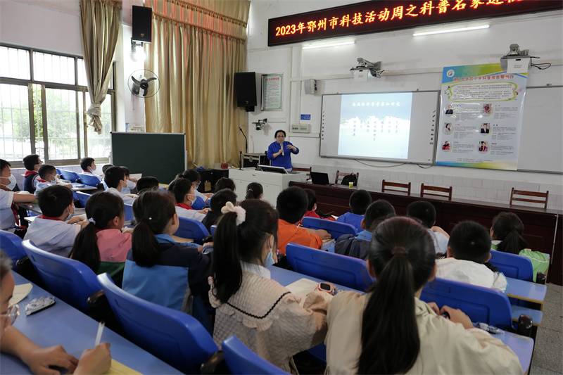 上图为5月10日下午周春霞教授在华容区华容实验小学开展科普活动