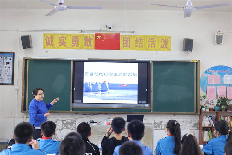 5月11日下午,周教授来到鄂城区燕矶中学,通过图文并茂的课件,带领七年级学生跟随科学考察队伍,领略了两极绮丽的自然风光与复杂的气候环境,拜访了神秘的极地生物。周教授强调,为了保护美好独特的极地,人们要提高环境保护意识,同学们纷纷表示,会从身边小事做起,保护美好家园。