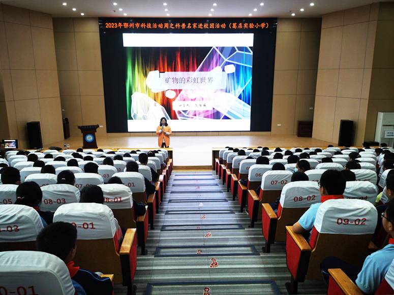 5月11日,中国地质大学国际教育学院副院长、副教授、国家级珠宝玉石质量检验师范陆薇分别来到鄂城区汀祖镇王寿小学与华容区葛店实验小学,带来以《矿物的彩虹世界》为题的科普报告。
